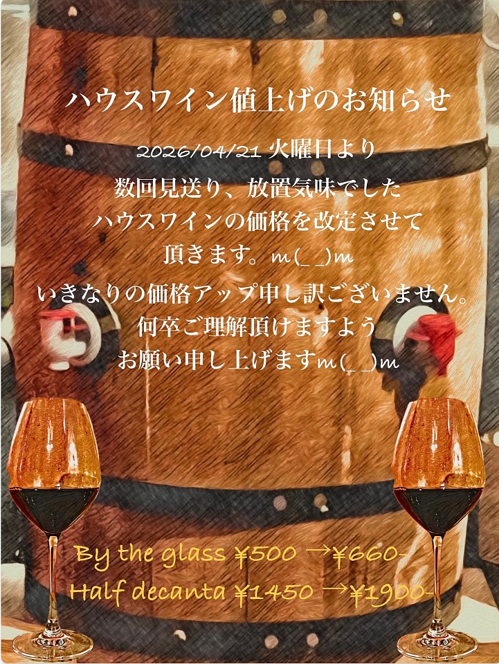 ハウスワインの価格を改定させて