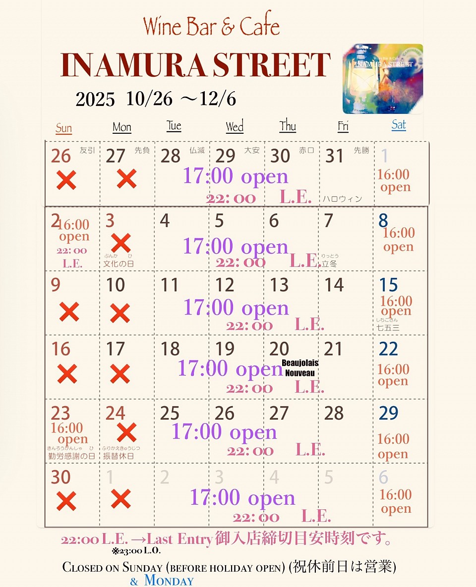 〜小さなワインカフェ〜Wine Bar INAMURA STREET